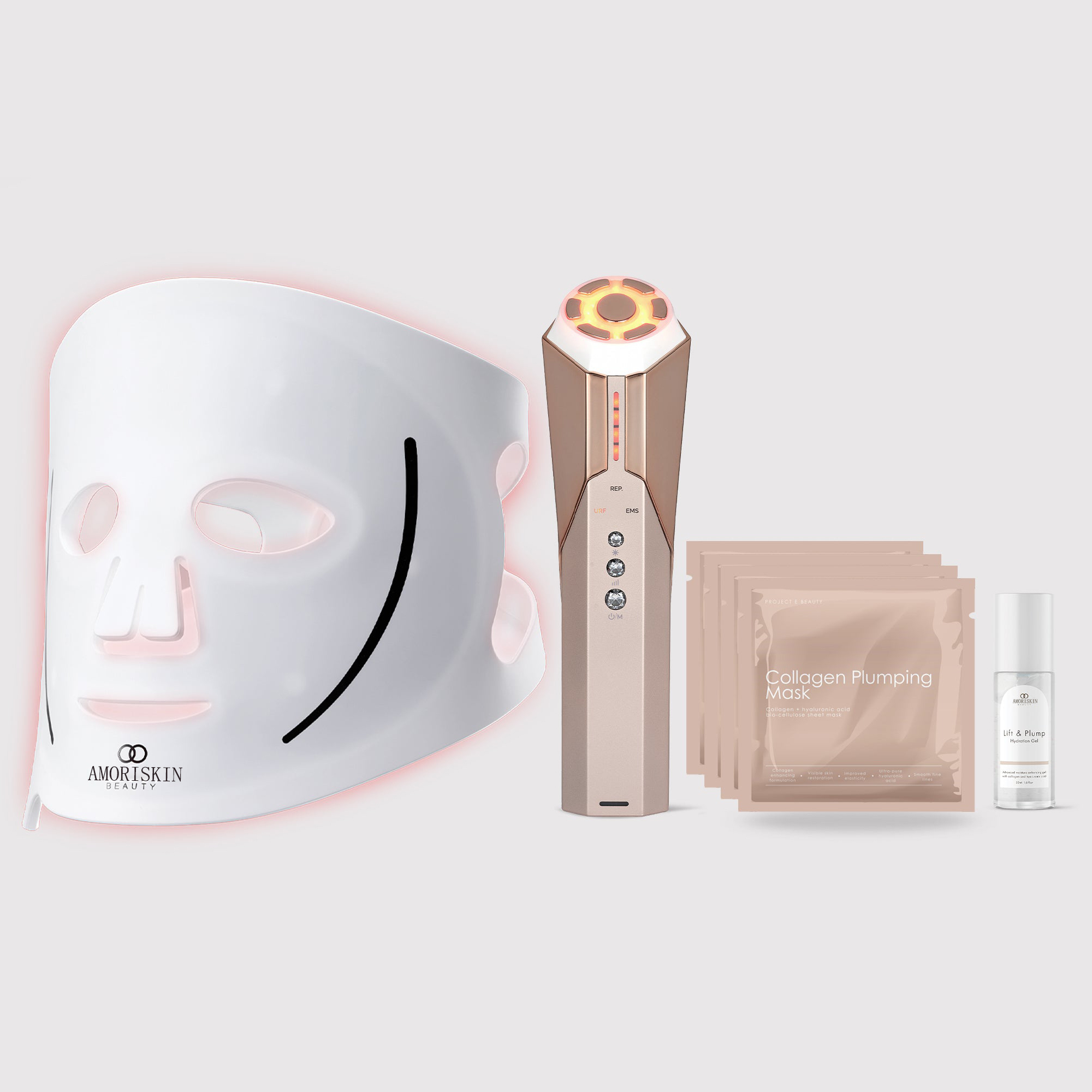 Your complete ritual for lifted, luminous skin. This advanced facial set combines the skin-rejuvenating power of the LumaLux Face Pro LED Light Therapy Mask with the sculpting precision of the Reva Instant Age Renewal Wand, targeting tone, firmness, and facial definition. Paired with our collagen-infused sheet and plumping serum, it deeply hydrates, smooths fine lines, and restores youthful bounce. A full-spectrum system designed to energize, contour, and transform your skin at every stage.